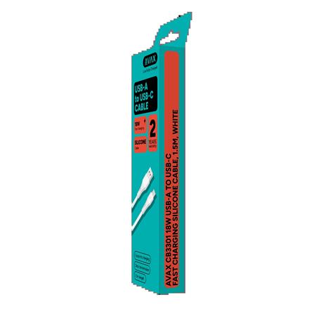 Töltőkábel, USB-A - USB-C, 18W, 1,5 m, AVAX "CB3301", fehér