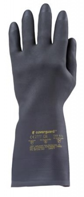 Vegyszerálló, mikroorganizmusok ellen védelemmel ellátott védőkesztyű.-anyaga: polikloroprén és természetes gumi anyag-pamutbolyhozott belső-0,72 mm vastag-hosszúság: 32 cm-csúszás ellen érdesített tenyér-szín: fekete-CE minősítés-méret: 9/L